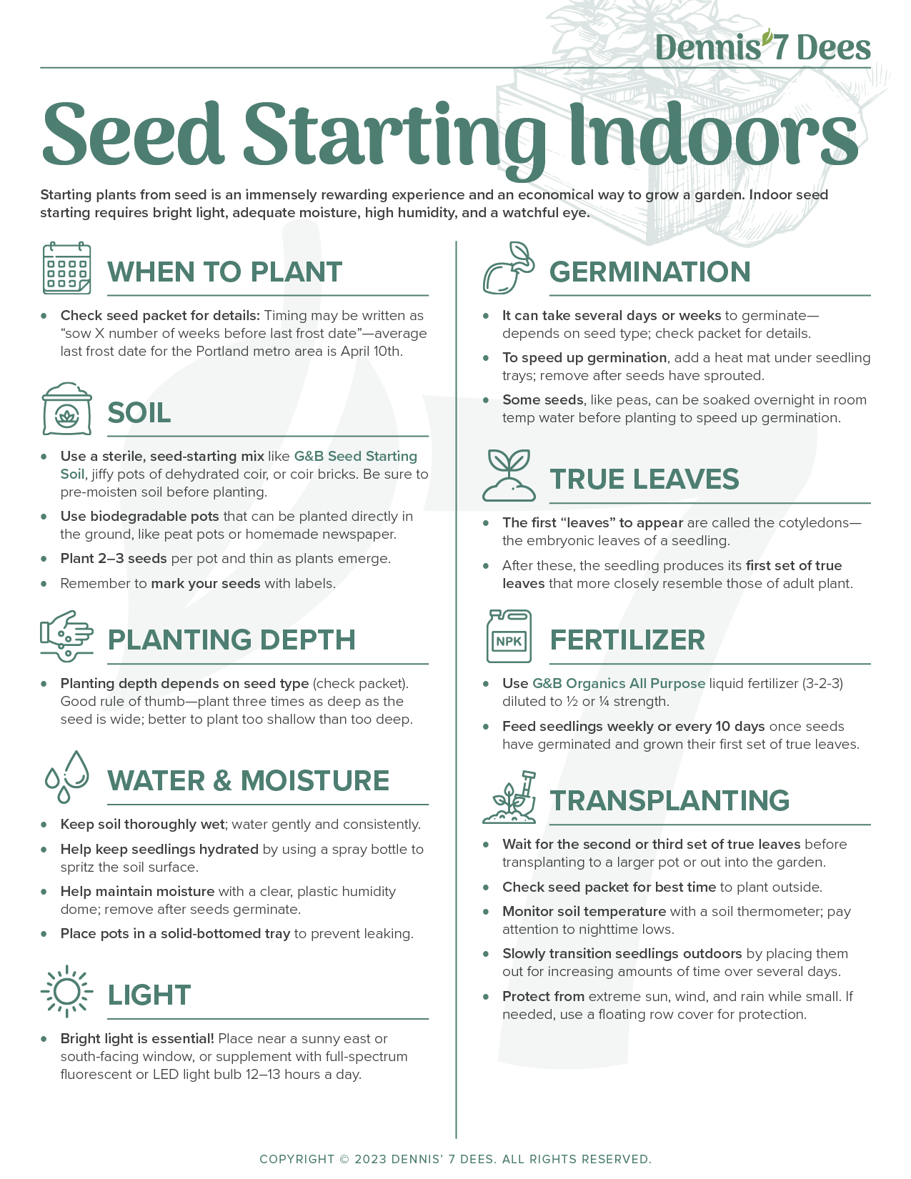 Starting seeds indoors can help revive even the weariest of winter gardeners and give them some hope for the gardening season ahead! Come visit Dennis’ 7 Dees Garden Centers and shop our fantastic range of high-quality seeds and seed starting supplies, or get friendly advice on starting seeds from our gardening experts!